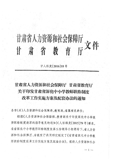 甘人社發(fā)[2016]18號關(guān)于印發(fā)甘肅省深化中小學教師職稱制度改革工作實施方案及配套辦法的通知 時間:2016-09-05 分類:政策文件 甘人社發(fā)[2016]18號關(guān)于印發(fā)甘肅省深化中小學教師職稱制度改革工作實施方案及配套辦法的通知 分享: 上一個: 關(guān)于做好甘肅省“十三五”2016年度教育科學規(guī)劃課題申報立項工作的通知 下一個: 于轉(zhuǎn)發(fā)省教科所關(guān)于開展第二屆中小學優(yōu)秀教學方法(模式)征集評選活動的通知 相關(guān)文章 重磅!國家關(guān)于規(guī)范黨員干部網(wǎng)絡行為6條意見來了 關(guān)于組織參加2021年應急普法知識競賽的通知 關(guān)于轉(zhuǎn)發(fā)甘肅省人民政府教育督導委員會辦公室關(guān)于組織開展對省級人民政府履行教育職責情況滿意度調(diào)查的通知 關(guān)于激活使用醫(yī)保電子憑證的通知 定西市第一中學預防學生欺凌和校園不良網(wǎng)絡貸款專項整治行動實施方案 關(guān)于開展2019年“一師一優(yōu)課、一課一名師”活動的通知 《新時代中小學教師職業(yè)行為十項準則》全文 教育部關(guān)于印發(fā)《中小學教師違反職業(yè)道德 行為處理辦法(2018年修訂)》的通知