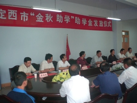 2007年8月17日,定西市“金秋助學”助學金發(fā)放儀式在我校舉行。市委、市政府、市人大、市政協(xié)和市總工會領導黃周會、文淑芳、黃愛菊、董繼信、趙學仁、潘亞軍、董成剛、王成仁等出席會議并向受助學生發(fā)放助學金。學校領導賈國江校長,副校長楊繼柏、趙榮,工會主席董萬福參加了會議。????? ?市委副書記黃周會代表四大班子和市總工會發(fā)表講話,他首先對50名成績優(yōu)異的寒門學子表祝賀,他說:“吃水不忘挖井人,每個同學要懂得感恩和報答,要把助學金用在學習上,認真刻苦地學習,努力提高自身素質(zhì),使自己成為有用之才,用優(yōu)異的成績和扎實的本領回報黨和政府以及社會各界的關心和幫助?!笔苤鷮W生代表趙政致答謝詞,表示黨和政府以及社會各界對貧困學子的幫助,讓他們感受到了全社會對貧困學生的關愛和幫助,必將成為他們學習的動力,他們將認真學習,以報答黨和政府的關心,回報社會。?????? 此次助學活動,我校共有31名困難職工和困難農(nóng)民工子女每人得到2000元的資助,共計6.2萬元。附:定西市“金秋助學”定西一中受助學生名單????
