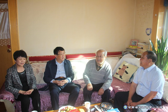在 “省園丁”獎獲得者、我校退休教師王術(shù)家中,唐曉明走進簡樸整潔的客廳,和他促膝交談,叮囑王術(shù)老師一定要保重身體,繼續(xù)發(fā)揮余熱,關(guān)心和支持全市教育事業(yè)。同時,唐書記叮囑學(xué)校領(lǐng)導(dǎo)要照顧好老教師的生活,確保他們安享晚年。