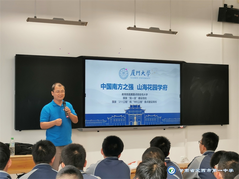 接著,馬劍教授為我校高二部分學(xué)生開展了主題為“中國南方之強 山?;▓@學(xué)府”的講座,馬劍教授就廈門大學(xué)的歷史、學(xué)科建設(shè)及優(yōu)勢學(xué)科、人才培養(yǎng)策略、歷年招生情況和辦學(xué)特色等作了介紹,對定西一中多年來為廈大輸送優(yōu)秀學(xué)子表示感謝,并充分肯定了我校學(xué)子在廈大的優(yōu)異表現(xiàn),希望更多我校學(xué)子報考廈門大學(xué)。講座結(jié)束后,學(xué)生們積極參與互動,就報考專業(yè)選擇、大學(xué)學(xué)習(xí)、學(xué)業(yè)規(guī)劃等提出問題,馬劍教授給予耐心回答,現(xiàn)場氣氛十分活躍。