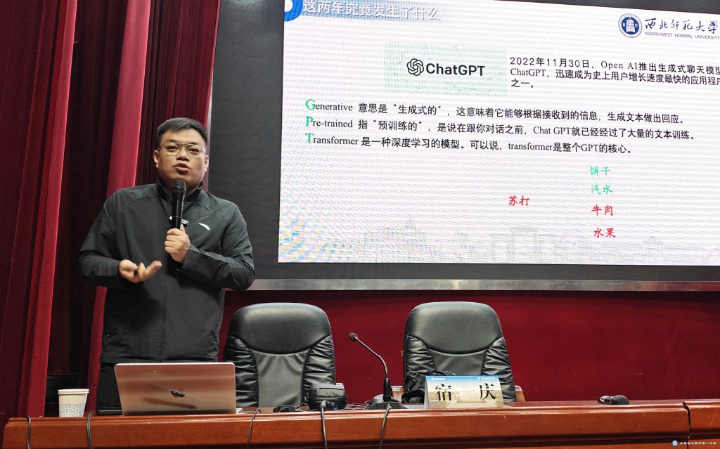 25日上午,西北師范大學(xué)教育技術(shù)學(xué)院副院長(zhǎng)宿慶以《理性認(rèn)識(shí),合理利用——Deepsesk(深度探索)人工智能教育應(yīng)用》為題,深度講解Deepsesk這一技術(shù)載體與教育發(fā)展的相互作用和有益借鑒,內(nèi)容新穎、實(shí)用性強(qiáng)。