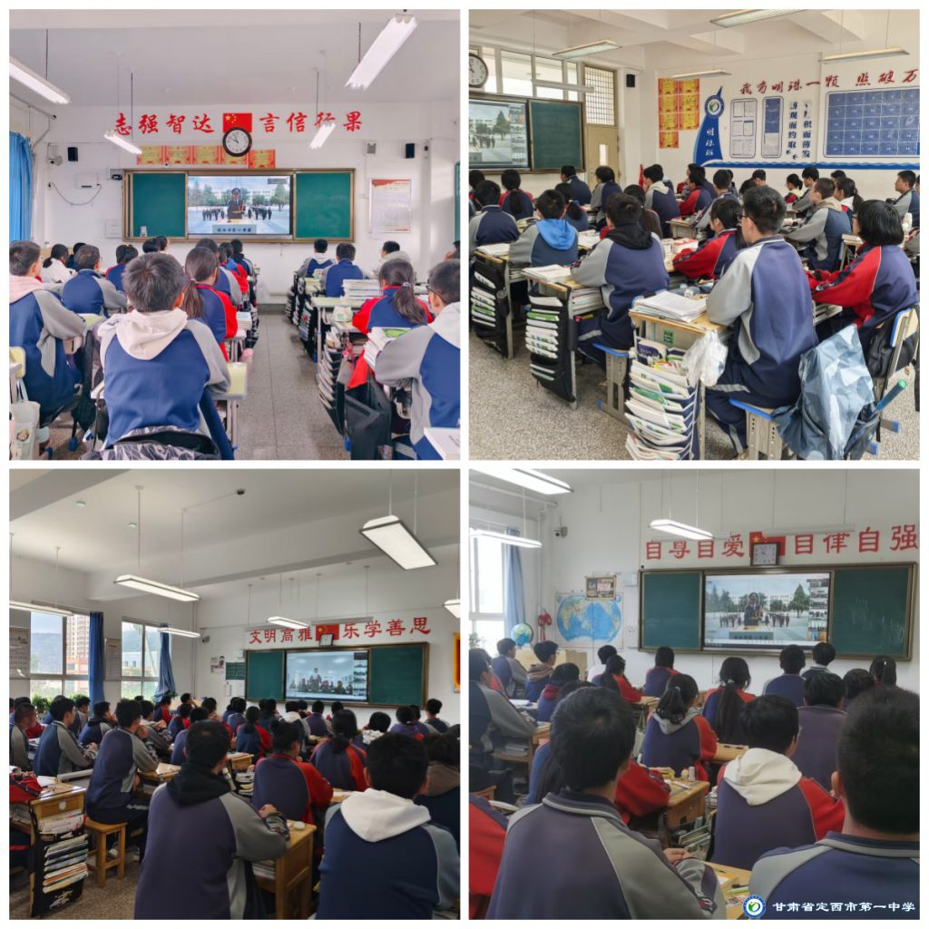 在第十二個(gè)烈士紀(jì)念日這個(gè)莊嚴(yán)時(shí)刻,我校與安定區(qū)東關(guān)小學(xué)、西關(guān)小學(xué)及青島92677部隊(duì)海防官兵跨越山河,聯(lián)合開展“同升國(guó)旗,強(qiáng)國(guó)有我”線上主題活動(dòng),共同緬懷英烈,砥礪強(qiáng)國(guó)之志。上午9時(shí)50分,在雄壯的國(guó)歌聲中,五星紅旗在定西一中主會(huì)場(chǎng)升起,三校師生與邊防官兵線上線下同步參與。