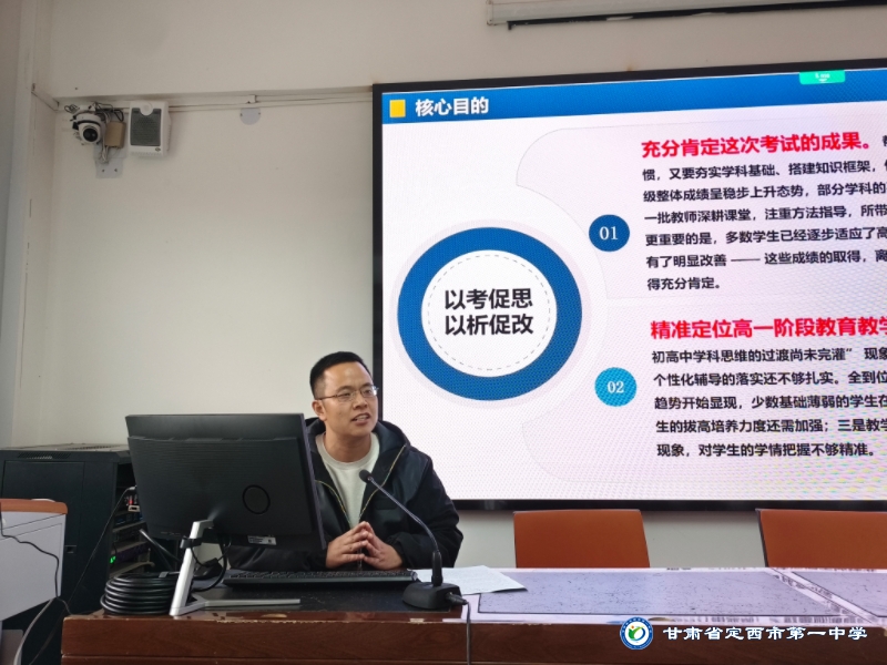 14日,高一年級(jí)組織召開年級(jí)部例會(huì)。教研處主任王景龍從平均分、貢獻(xiàn)率、尖子生分布等方面對(duì)期中考試成績(jī)做了詳細(xì)分析,并以各班學(xué)科排名和貢獻(xiàn)人數(shù)為著眼點(diǎn),要求班主任和各科任教師要根據(jù)考情學(xué)情有針對(duì)性地指導(dǎo)學(xué)生學(xué)習(xí),持續(xù)強(qiáng)化基礎(chǔ)訓(xùn)練,優(yōu)化綜合訓(xùn)練,提高教學(xué)效率。